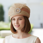 The Ascot Turban is an exquisite, vintage-inspired formal hat combining natural straw texture with smooth satin. Adorned with a striking crystal wreath brooch, it is the perfect elegant accessory for weddings, races, and sophisticated occasions.