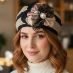 A luxe satin and sequin beret crowned with elegant floral embellishments and radiant sparkle—where timeless grace meets modern glam.